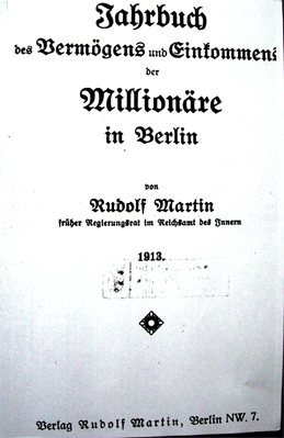 Jahrbuch des Vermögens und Einkommens der Millionäre in Berlin, hrsg. von Rudolf Martin. Berlin: Verlag Rudolf Martin 1913