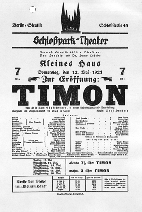 Der Beitrag erzaehlt die weitgehend unbekannte Geschichte des Steglitzer Schlosspark-Theaters vor 1945. 1880 erwarb der Kaufmann Otto Haack (ca. 1853-1915) ein Flurstück von rund vier Hektar, das von der Rothenburg- bis zur Schloss-, von der Braille- bis zur Wrangelstraße reichte. Zu diesem Besitz gehoerten das Schlosspark-Ensemble mit dem Gutshaus, dem so genannten Wrangel-Schloesschen, und ehemalige Gutsgebaeude. Hier begann Otto Haack mit dem Aus- und Umbau zu einem der damals in Mode kommenden Freizeitetablissements. Dazu kamen schon bald auch sommerliche Theaterauffuehrungen. Doch Plaene der Gemeinde für ein ganzjaehrig spielendes Theater zerschlugen sich zuerst durch den 1. Weltkrieg, dann durch die Eingemeindung von Steglitz in die Stadt Berlin. Deshalb bildete sich 1920 eine Schlosspark-Theater Gesellschaft mit beschraenkter Haftung zur Errichtung eines privaten Theaters durch den Verkauf von „Gruenderanteilen“ und auf der Grundlage eines preiswerten Abonnementsystems. Initiator und Finanzier dieser Gesellschaft war der Unternehmer und Schriftsteller Robert Friedlaender-Prechtl (1874-1950), seine Mitgesellschafter waren der Wirtschaftswissenschaftler Dr. Joachim Tiburtius (1889-1967), der spaetere Berliner Volksbildungssenator, und der Steglitzer Lehrer Dr. Hans Lebede (1883-1945). Nach dem Ausbau eines Kleinen und eines Großen Hauses eroeffnete man 1921 die Saison. Doch die hochfahrenden Plaene für ein kulturelles Zentrum in Steglitz mit Theater- und Opernauffuehrungen, Konzerten, Filmvorstellungen und Lesungen standen von Beginn an wirtschaftlich und kulturell unter einem schlechten Stern. Im Großen Haus erhielt das moderne Medium Film eine feste Staette, im Kleinen Haus, das dem Theater blieb, wechselten die Direktionen, immer knapp vor der Pleite, fast jaehrlich. Die letzte Theaterpremiere fand im Maerz 1934 statt.